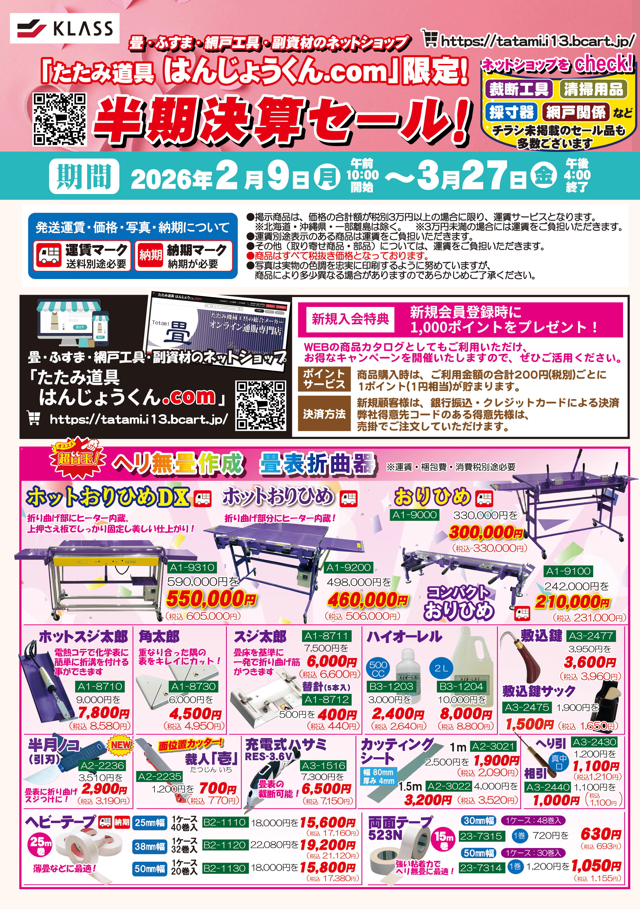 2026年3月27日まで★ネットショップ限定 【半期決算セール!】開催!